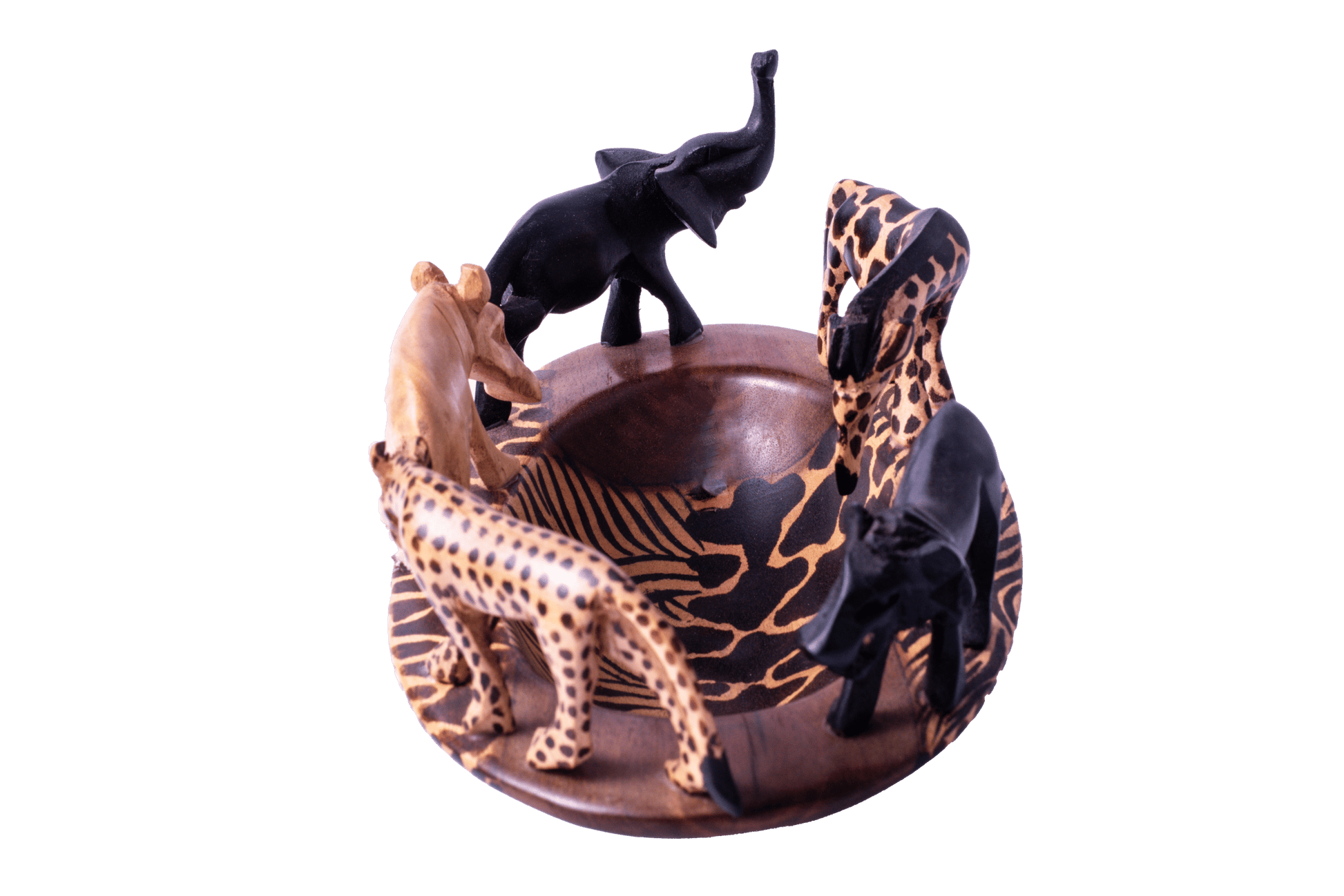 Cet élégant bol décoratif ovale en bois, orné d'un motif animalier, soigneusement sculpté à la main, apporte une touche de sophistication et de charme culturel à votre décoration. Chaque pièce est fabriquée de manière unique avec une attention particulière, mettant en valeur le savoir-faire des artisans kenyans.